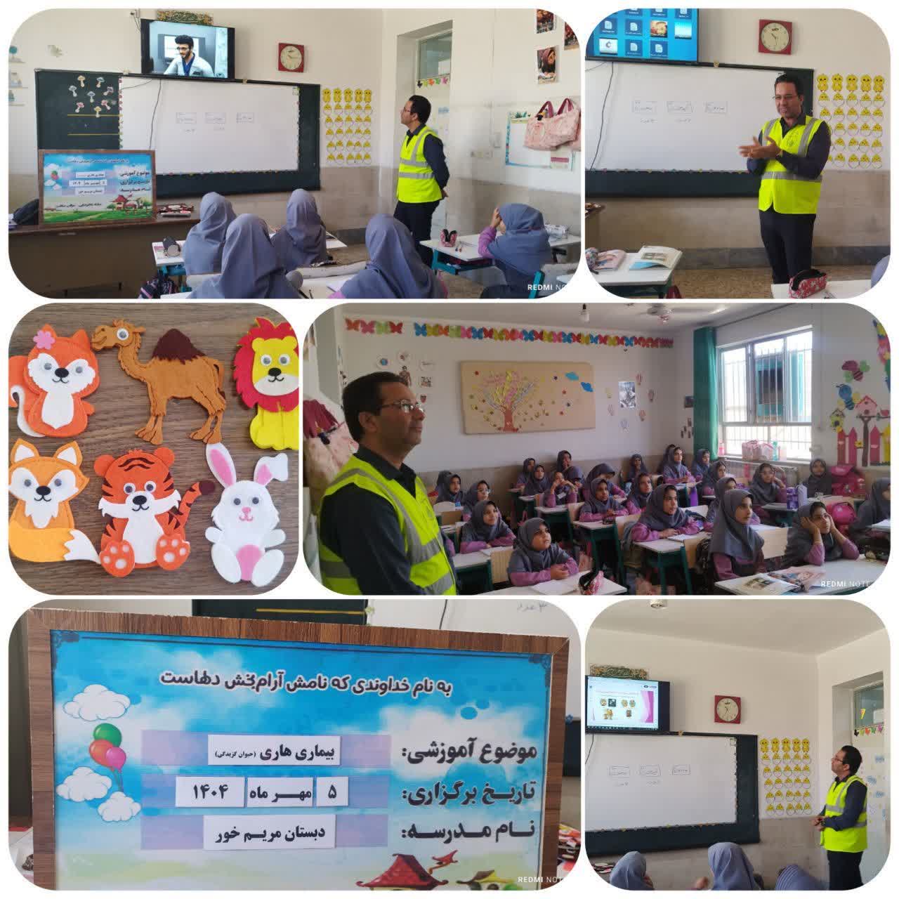 آموزش بیماری هاری (حیوان گزیدگی) به دانش آموزان کلاس پنجم دبستان مریم خور به مناسبت روز جهانی هاری