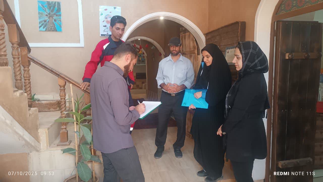 در روز سه شنبه مورخ 1404/07/15 کارشناس محترم بهداشت محیط مرکز خور در معیت رئیس محترم میراث فرهنکی ،صنایع دستی و گردشگری شهرستان ، نماینده محترم اداره اماکن نیروی انتظامی و نماینده محترم آتش نشانی از اقامتگاه های بومگردی شهر خور بازدید نمودند.در این بازرسی ها وضعیت بهداشتی و ایمنی اقامتگاه ها جهت شروع فعالیت آنها در فصل آتی مورد ارزیابی قرار گرفت و موارد لازم جهت رفع آن ها مورد تاکید قرار گرفت.
