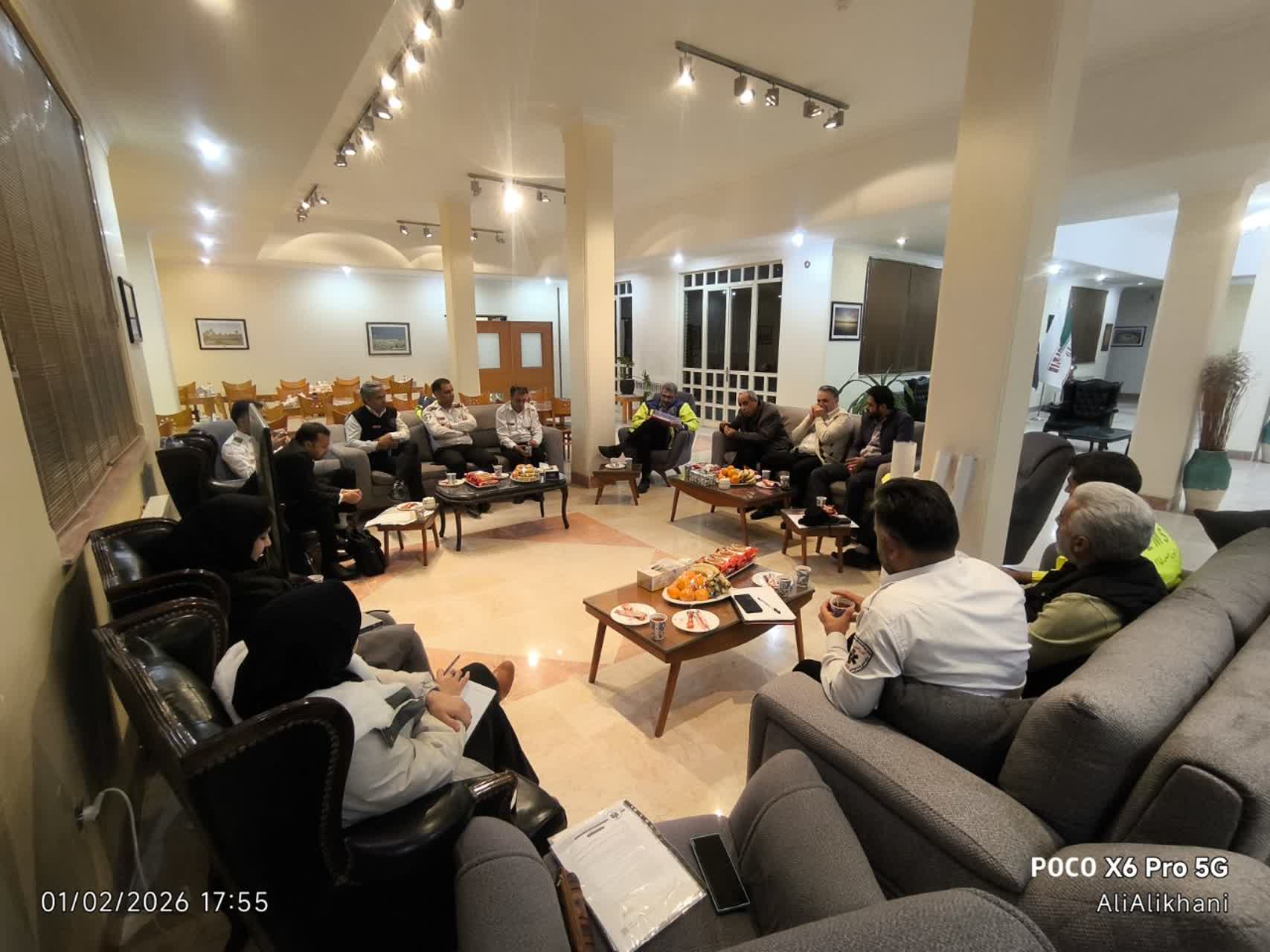 جلسهای با حضور جناب آقای دکتر سرور، معاون فنی عملیات اورژانس تهران، سرکار خانم عزتی، مسئول اورژانس هوایی کشور، و جناب آقای صفری، مسئول محترم مرکز EOC، برگزار شد.