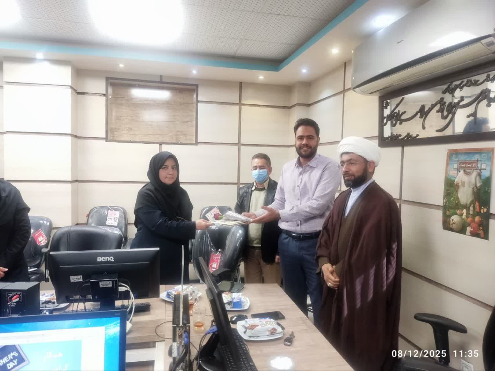 در پایان این مراسم، به پاس قدردانی از تلاشها و فعالیتهای ارزشمند بانوان، از همکار نمونه خانم با اهدای لوح سپاس و شاخه گل تقدیر به عمل آمد.