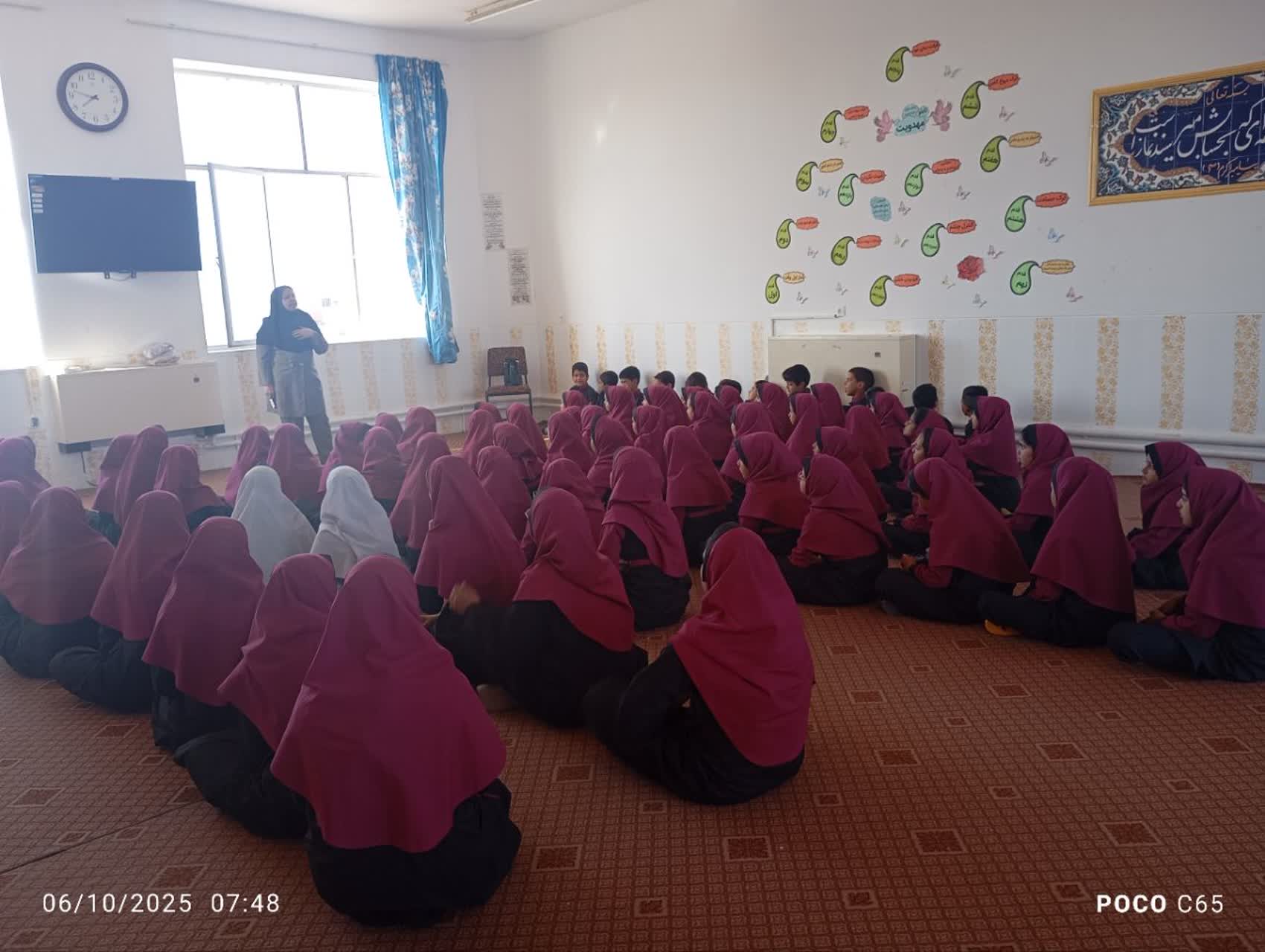 جلسه خودمراقبتی فردی با موضوع مهارت های زندگی(نه گفتن) در آموزشگاه دخترانه آسیه( س) چاهملک توسط کارشناس سلامت روان خانم مهریزی زاده روز دوشنبه مورخ 1404/07/14