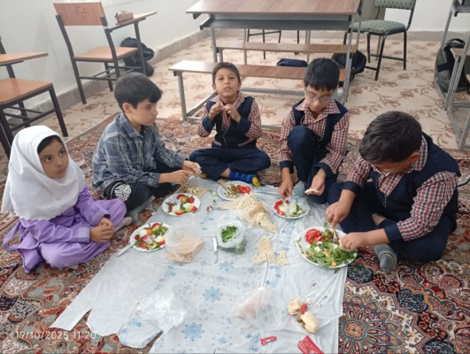 سفره صبحانه سالم در مدرسه شهید نواب صفوی در روستای گرم به مناسبت هفته کودک سفره صبحانه سالم در مدرسه شهید نواب صفوی در روستای گرم به مناسبت هفته کودک