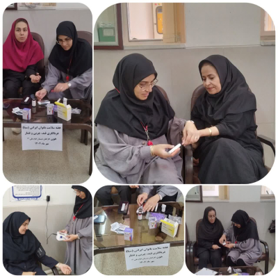 هفته سلامت بانوان ایرانی ۲۴ لغایت ۳۰ مهر ماه گرامی باد غربالگری قند، چربی و فشار خون کارکنان دبستان امام علی علیه السلام به مناسبت هفته سلامت بانوان ایرانی توسط خانم غلامرضایی مراقب سلامت با همکاری مرکز جامع سلامت خور